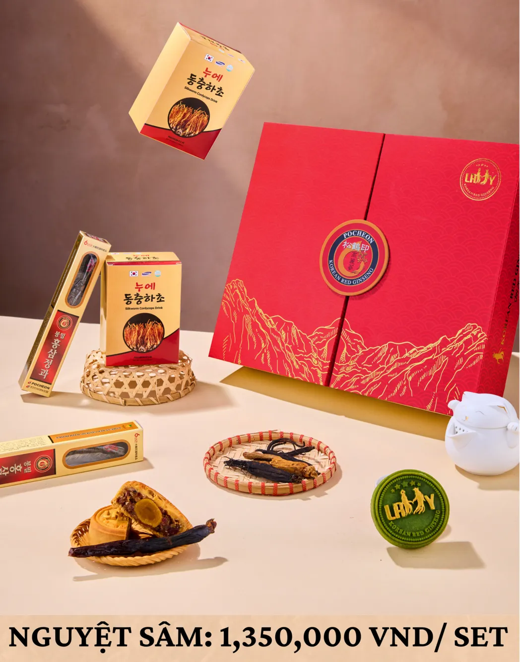 Nguyệt Sâm kết hợp đông trùng hạ thảo – hồng sâm – bánh trung thu, tạo nên món quà vừa tinh tế, vừa chăm sóc sức khỏe. Thiết kế sang trọng, chỉn chu, thích hợp để biếu tặng đối tác, tri ân khách hàng hay gửi gắm yêu thương đến gia đình, bạn bè.