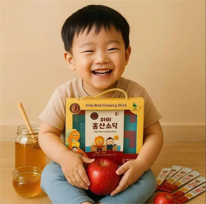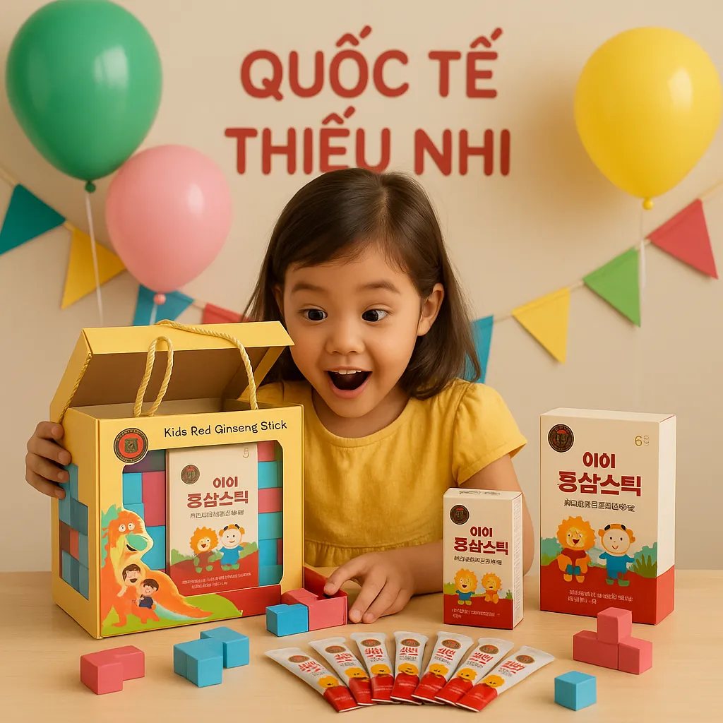 🎁 Kid Red Ginseng Stick – Set quà Hồng Sâm dành riêng cho trẻ em là lựa chọn tuyệt vời cho ngày 1/6. Sản phẩm kết hợp giữa hồng sâm Hàn Quốc cao cấp và bộ xếp hình thông minh, vừa giúp tăng cường sức khỏe, vừa kích thích tư duy sáng tạo cho bé.