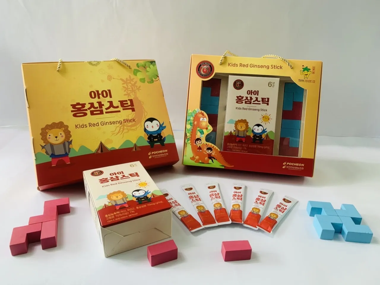 Nhằm đáp ứng nhu cầu chăm sóc sức khỏe của trẻ, Pocheon đã phát triển Kids Red Ginseng Stick – sản phẩm hồng sâm dạng thanh tiện lợi, phù hợp cho trẻ nhỏ.