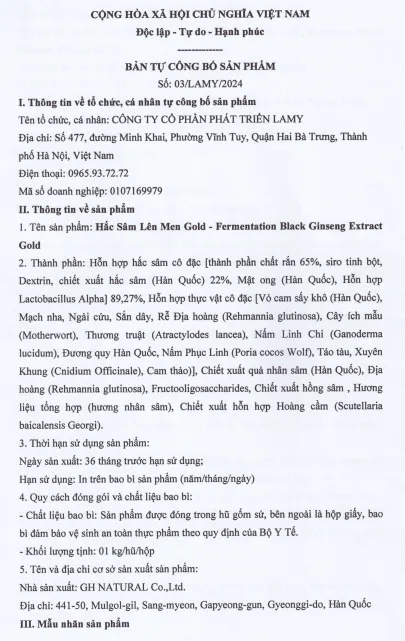 Số tự công bố sản phẩm: 03/LAMY/2024
