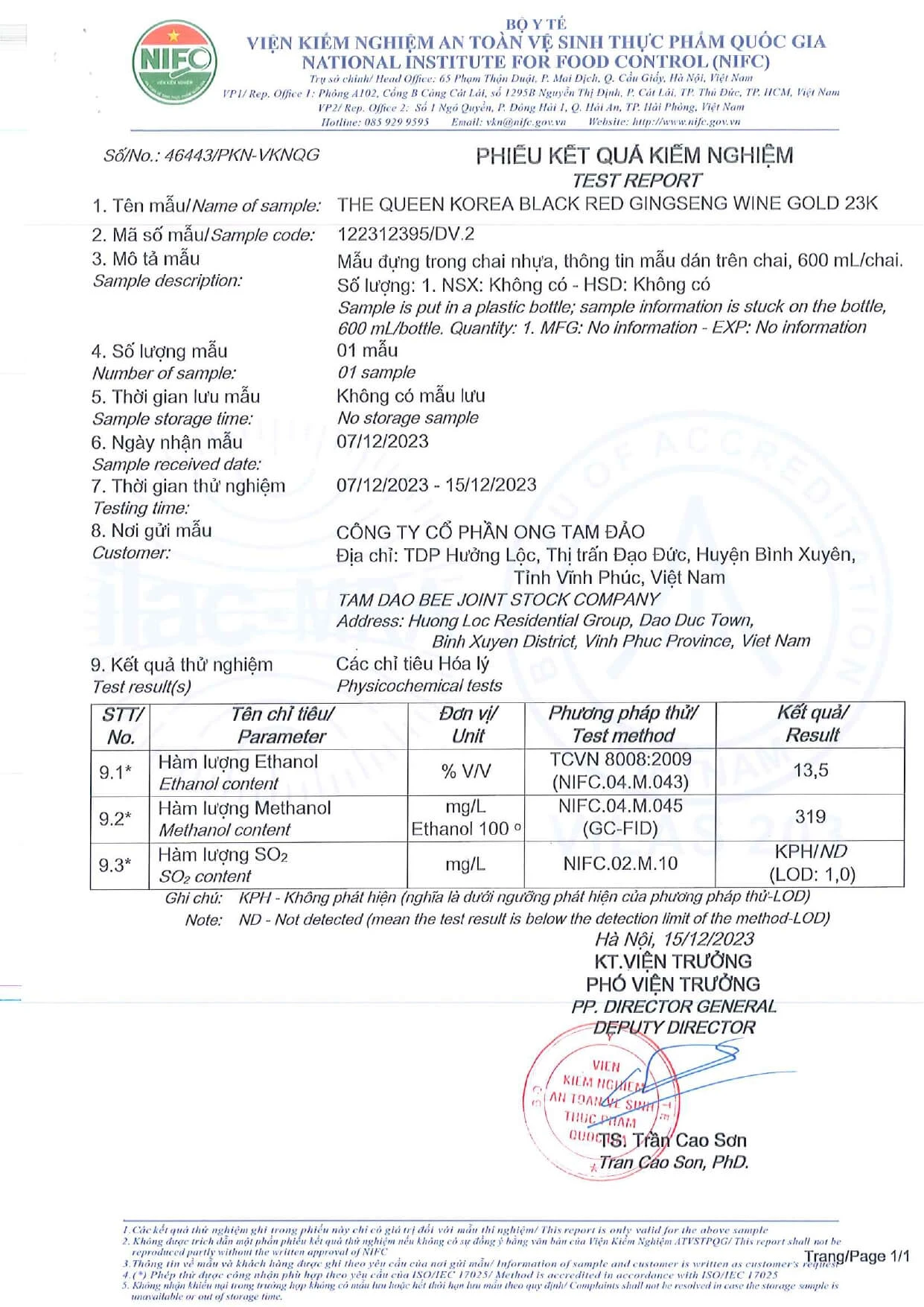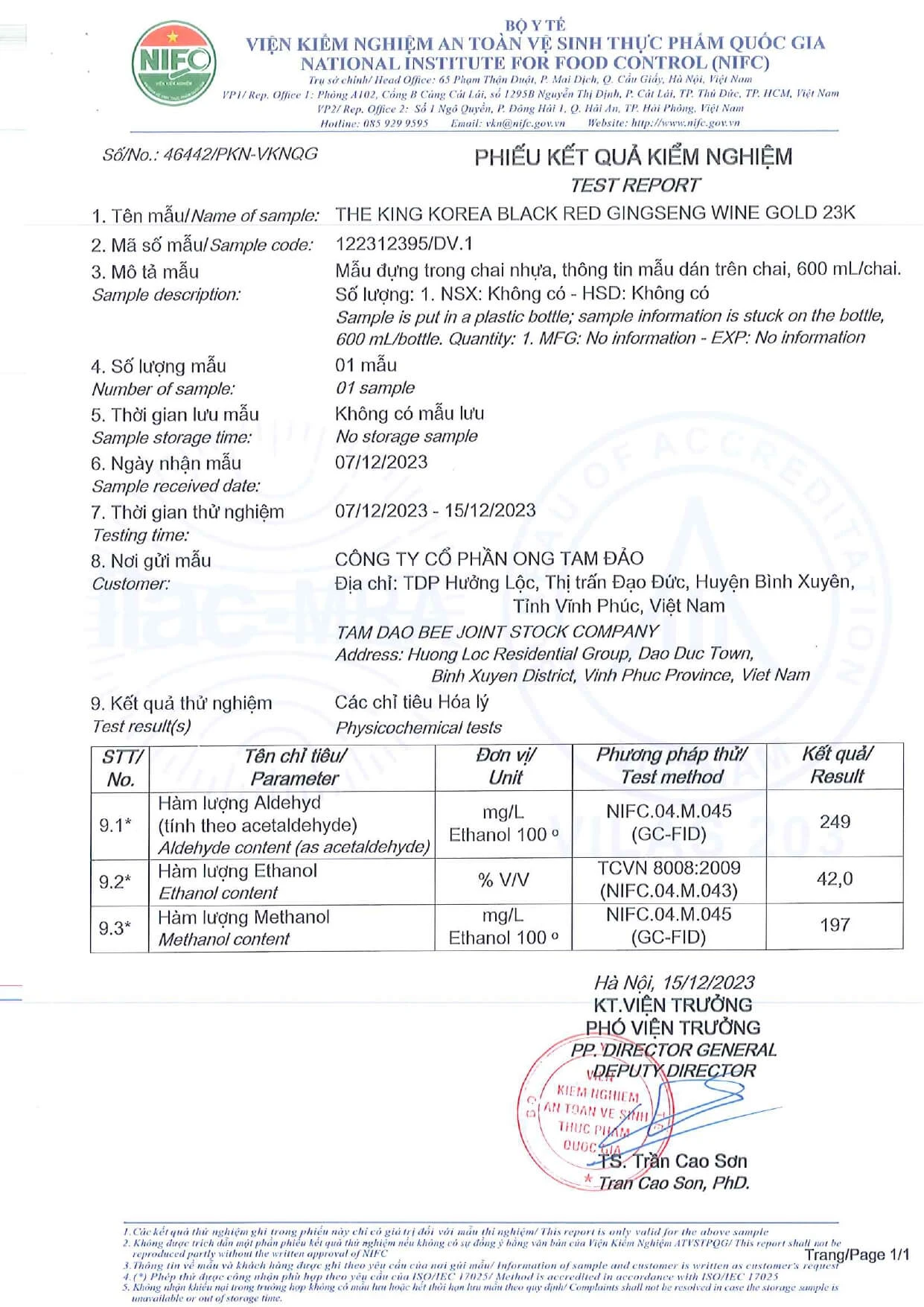 Tinh tuý đất trời Hàn - Việt là hồng sâm , hắc sâm bọc vàng 23k ngâm trong mật ong tự nhiên lên men và tinh chất nếp cái hoa vàng tạo ra siêu phẩm đồ uống bồi bổ sức khoẻ cả nam nữ già trẻ , tăng sức đề kháng,giảm quá trình lão hoá ,hỗ trợ phòng và điều trị ung thư…được công bố theo quy chuẩn của Chính phủ!. Hồng sâm và hắc sâm thì hàm lượng Saponin trong 1 củ nhiều hơn 10 củ sâm tươi và đặc biệt sang trọng khi được tẩm vàng 23k.