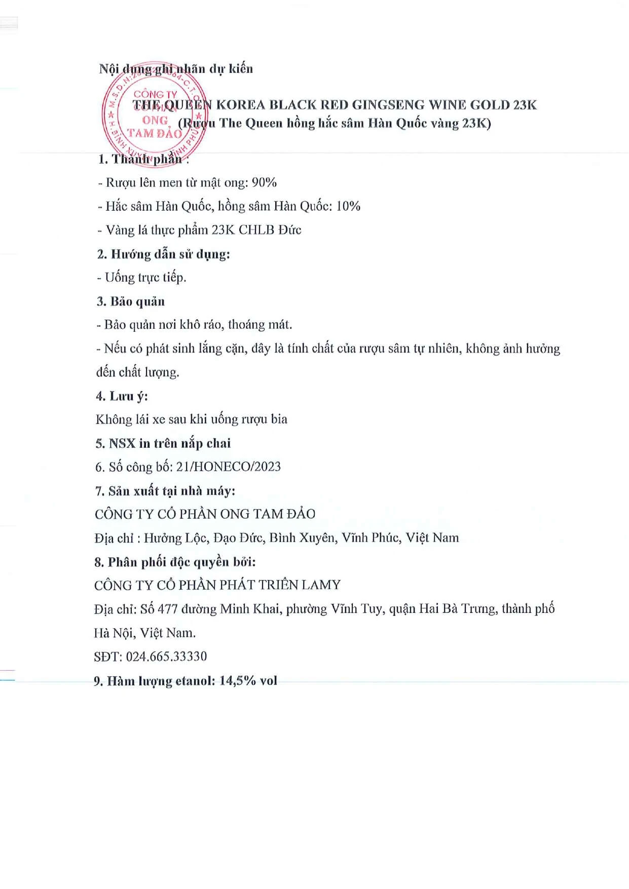 (Giá bán lẻ khuyến nghị)Tinh tuý đất trời Hàn - Việt là hồng sâm , hắc sâm bọc vàng 23k ngâm trong mật ong tự nhiên lên men và tinh chất nếp cái hoa vàng tạo ra siêu phẩm đồ uống bồi bổ sức khoẻ cả nam nữ già trẻ, tăng sức đề kháng, giảm quá trình lão hoá, hỗ trợ phòng và điều trị ung thư… được công bố theo quy chuẩn của Chính phủ!. Hồng sâm và hắc sâm thì hàm lượng Saponin trong 1 củ nhiều hơn 10 củ sâm tươi và đặc biệt sang trọng khi được tẩm vàng 23k.