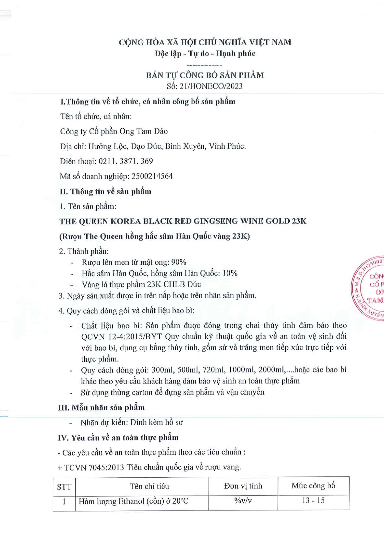 Điểm nhấn đặc biệt của sản phẩm là củ hổng sâm được bọc trong lá vàng thực phẩm thực phẩm 23k nhập khẩu từ CHLB Đức, tạo nên vẻ đẹp sang trọng, quyến rũ và độc đáo. Sự kết hợp hoàn hảo giữa rượu mật ong thiên nhiên, tinh chất nhân sâm và vàng lá không chỉ mang đến hương vị đậm đà mà còn góp phần nâng cao giá trị dinh dưỡng, trở thành lựa chọn lý tưởng cho sức khỏe và sự thư giãn.