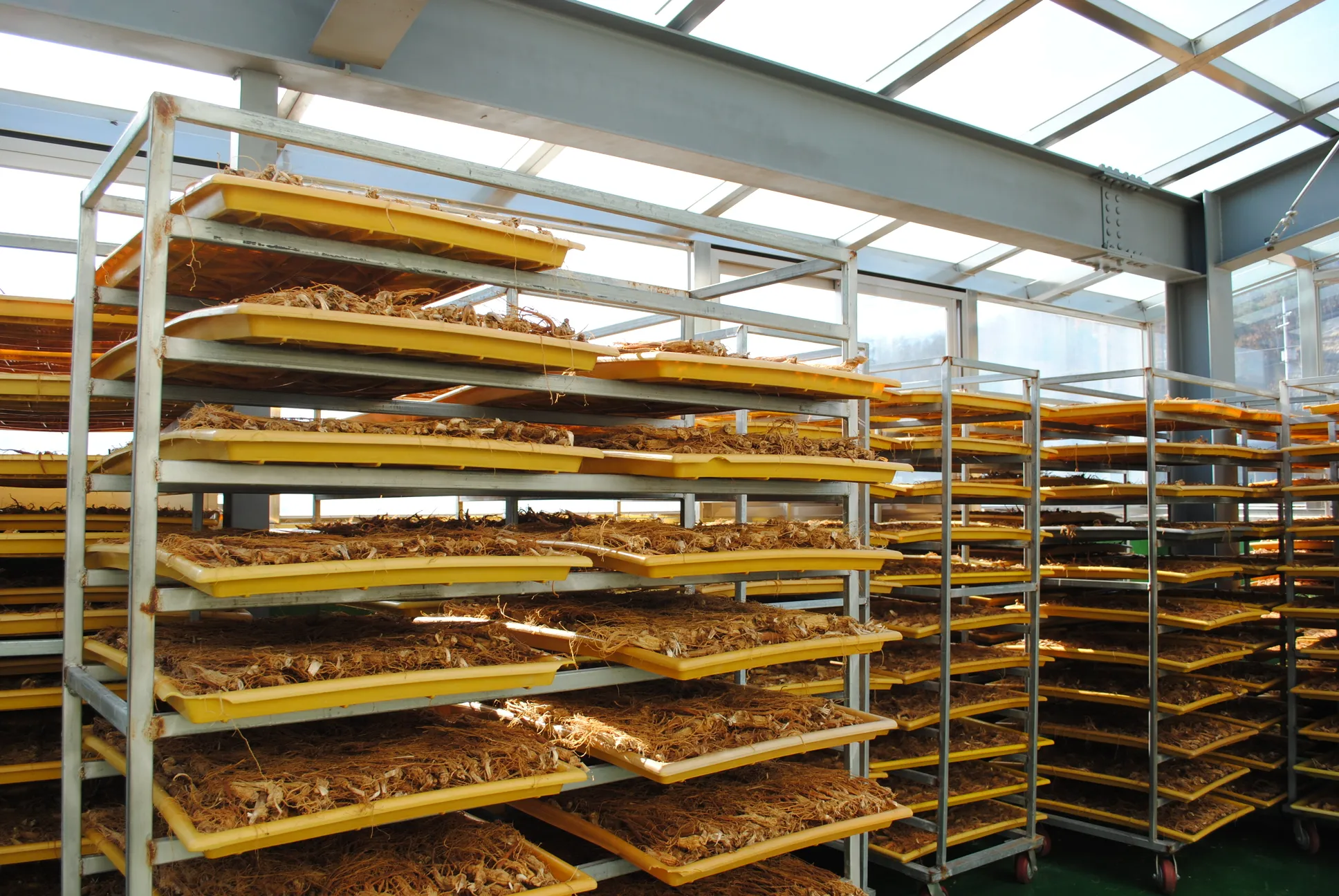 Thời gian phơi trong nhà kính thường kéo dài từ 5–10 ngày tùy điều kiện thời tiết và độ dày củ sâm.
